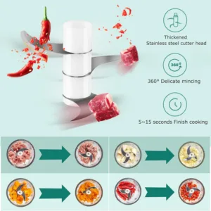- ⚙️ 3 Sharp Blades: Equipped with high-quality stainless steel blades for quick and precise chopping.