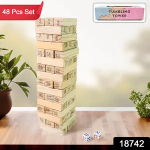 Wooden Tumbling Stacking Tower Game (48 Pcs Blocks + 2 Dices)